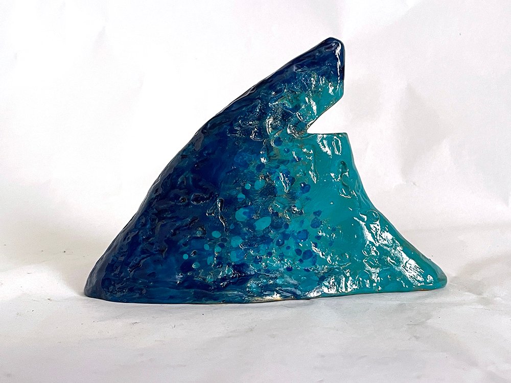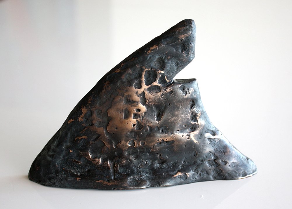 Cette pièce, tout comme sa version plus lisse et légèrement plus petite, l’aileron H8, remonte à 2014, une époque où le chiffre "politiquement correct" avancé, estimait à 100 millions le nombre de requins tués chaque année, entre autre pour leurs ailerons. C’est en réponse à ce nombre alarmant que j’avais alors créé ces séries spéciales de 100 petits ailerons en bronze pour sensibiliser à cette tragédie écologique. Quelques années plus tard, en 2022, Sea Shepherd révèlait une réalité encore plus sombre, avec une estimation portée à 273 millions de requins massacrés chaque année.