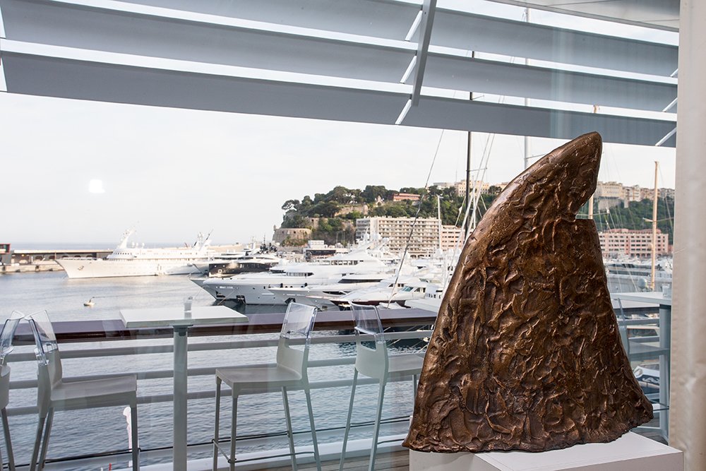 Le tout premier exemplaire, en bronze patine marron, sur la photo ci dessous fut, entre autres, exposé au Yacht Club de Monaco (photo@A.Colman). Il a malheureusement "disparu" par la suite lors de l’incendie qui a ravagé le restaurant Coco Beach à Nice en juillet 2017.