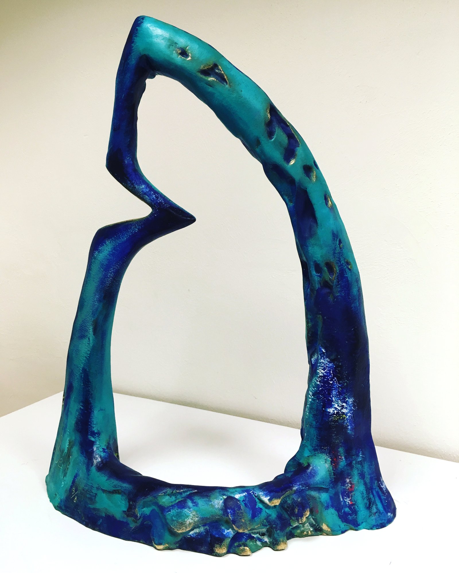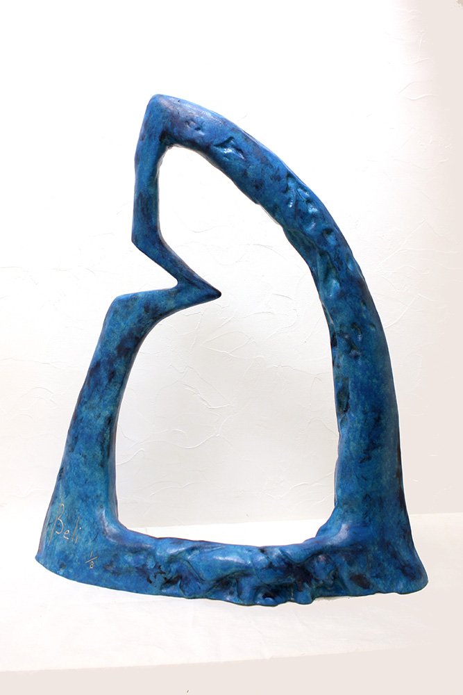 Un contour d’aileron, stylisé, comme une voile à l’horizon, mais toujours avec l’encoche...
