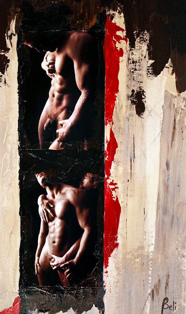 Au fil des années, mes techniques ont évolué : du dessin au fusain à la peinture à l’huile, puis à l’acrylique à partir de 2003, aux techniques mixtes, jusqu’à intégrer des insertions et collages photographiques. Chaque pièce explore la beauté et la sensualité du corps humain, capturant l’essence du mouvement et des émotions dans des formats variés, parfois en diptyques.