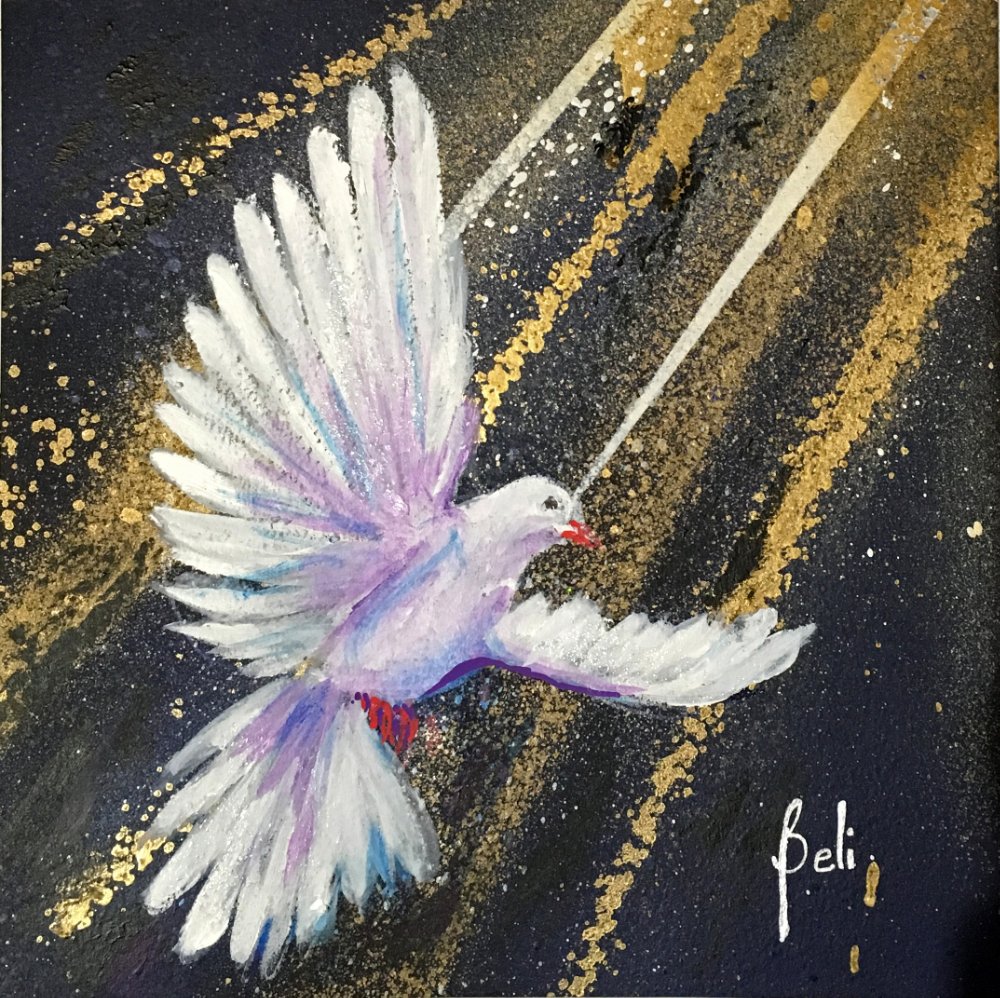 Ma peinture représentant une colombe blanche sur papier noir, œuvre n°19-269 « Let’s follow the light », avait été expédiée quelque temps après.