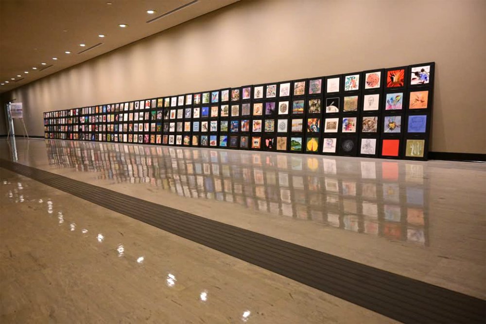 Surprise ! Cinq ans après, ce 9 décembre 2025, l’inauguration de l’exposition « Intercontinental Art Exhibition : United Nations, 80 ans pour la paix et la liberté » a eu lieu au siège de l’ONU à New York pour … les 80 ans de l’ONU ! Ave les œuvres de 216 artistes et ma colombe blanche est sur le mur. Je l’ai tout de suite repérée bien sûr !