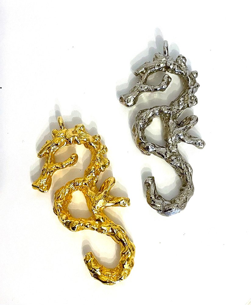 Toujours en bronze traité argent ou doré, un hippocampe plus imposant, pour celles qui aiment les bijoux qui font de l’effet.