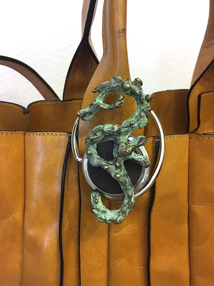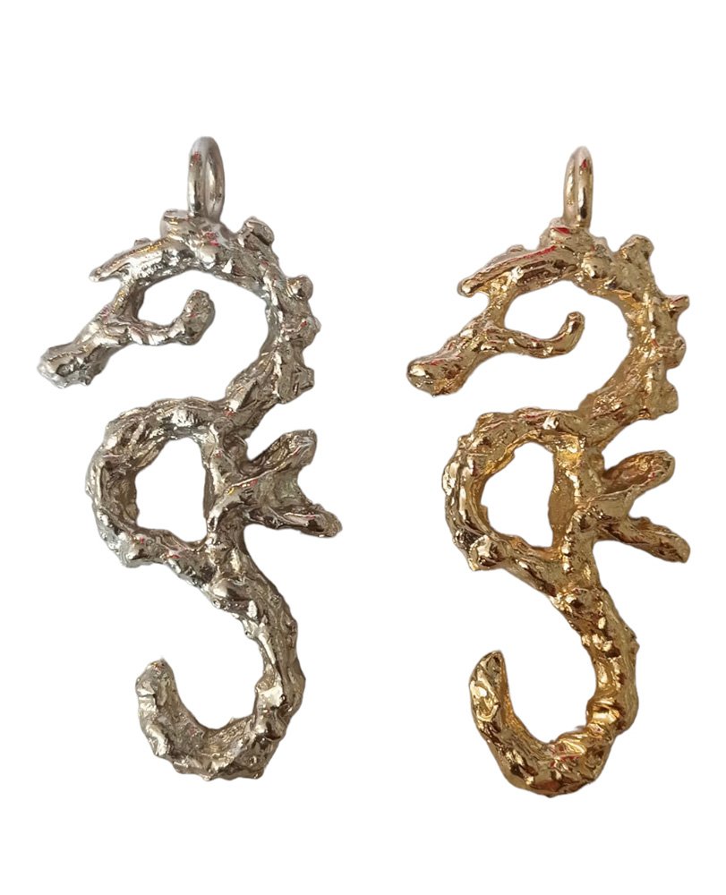 Un élégant petit hippocampe stylisé de 8cm de hauteur, qui s’est décliné en bijou pendentif, bijou de sac/porte sac, décoration de Noël ou petite sculpture sur pierre.