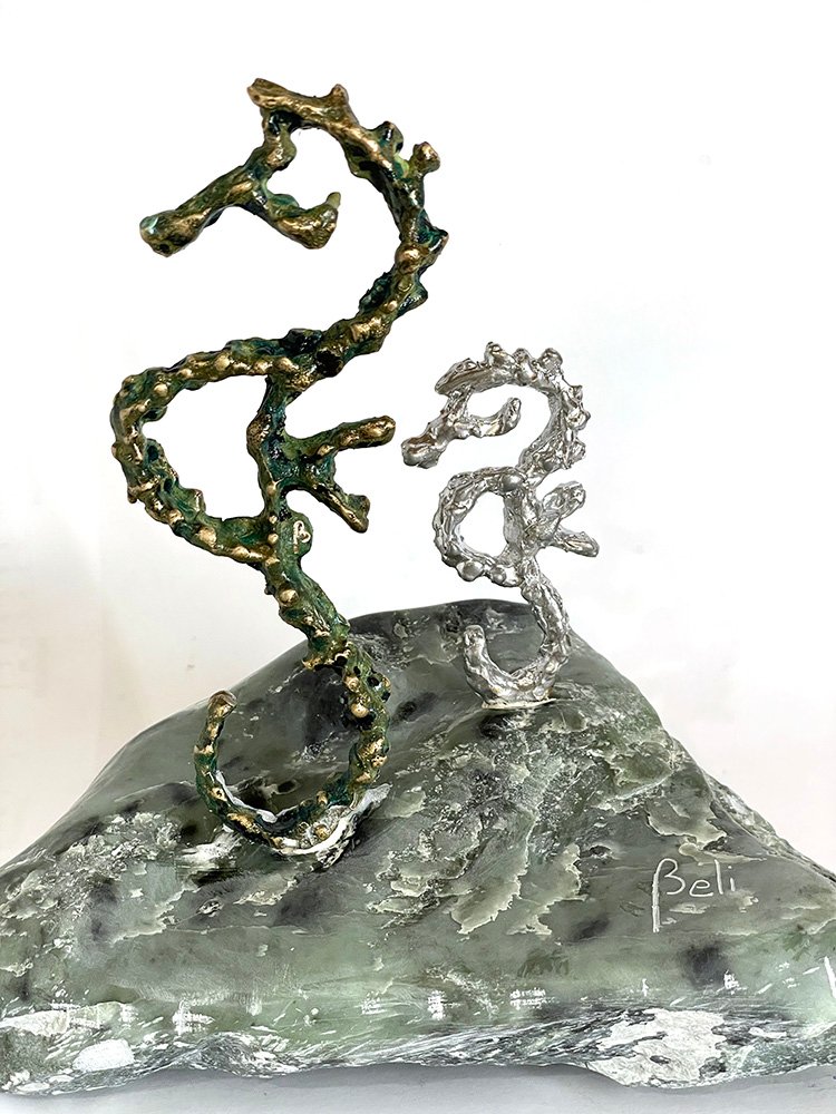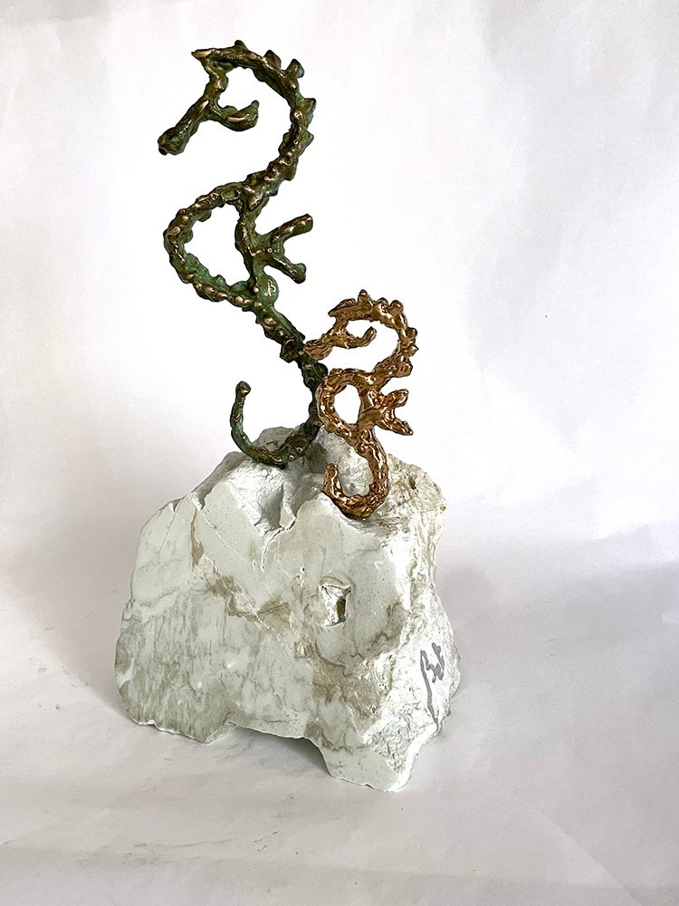 Bronze patiné ou traité (or ou argent).