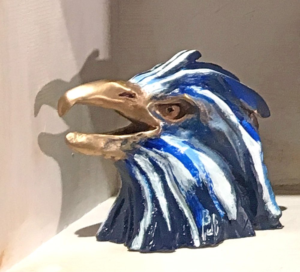 Mi aigle, mi phoenix, l’idée et la vision de cette sculpture me sont venues le jour où un ami très cher, m’annonçant une mauvaise nouvelle, m’a affirmé ensuite : "Tel le phoenix je renaitrai de mes cendres".