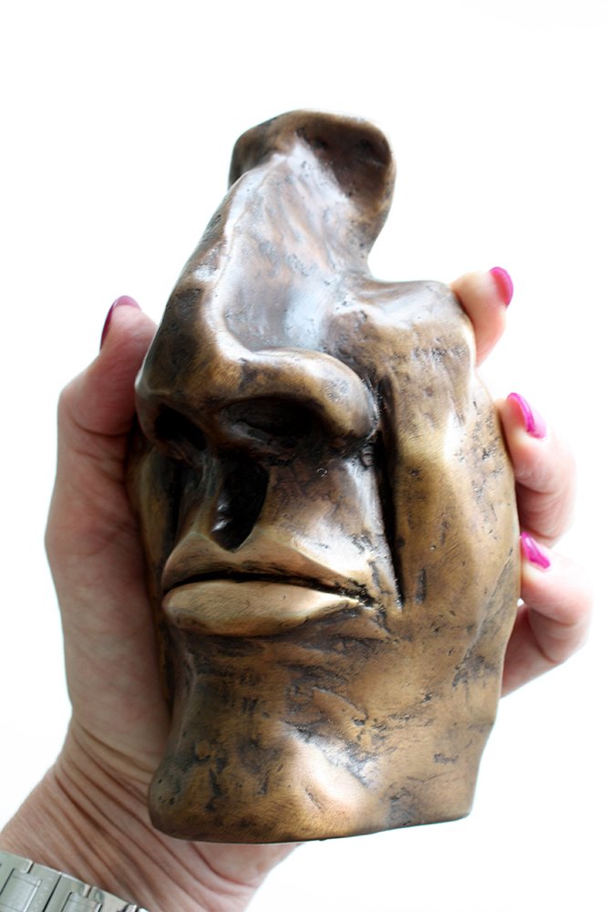"Obsession" capture un moment figé dans le temps, l’empreinte d’un visage qui m’a profondément marquée. Stylisée et énigmatique, cette sculpture en bronze se concentre sur le nez et la bouche, symboles de l’identité et de la présence silencieuse.