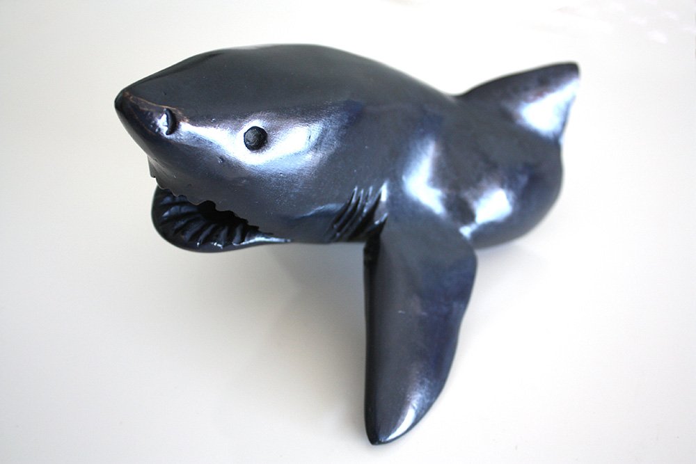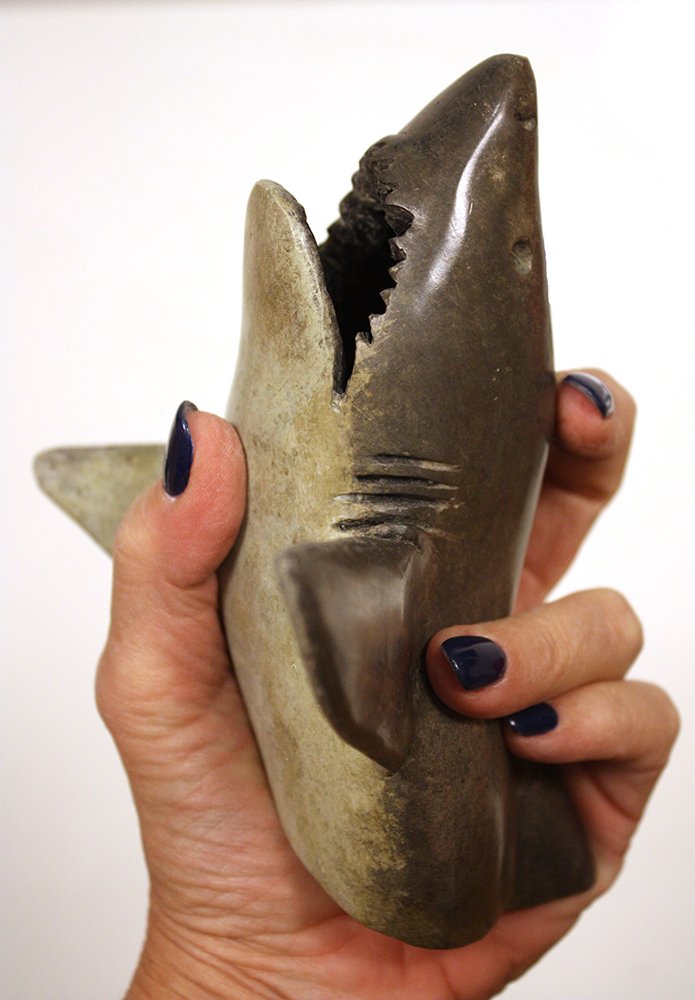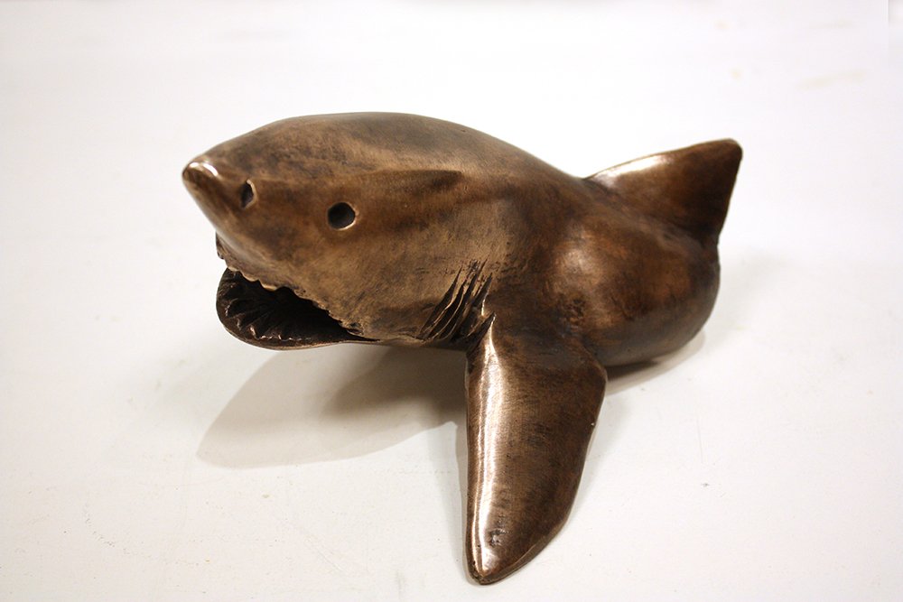 "Breach" est le terme anglais pour désigner le moment ou le grand requin blanc se propulse hors de l’eau, la plupart du temps du fait de la vitesse verticale qu’il a acquise en fonçant sur un phoque en surface. Un mouvement spectaculaire car il peut sortir entièrement de l’eau et ma sculpture représente le début de son "breach" quand son corps commence à sortir de l’eau.